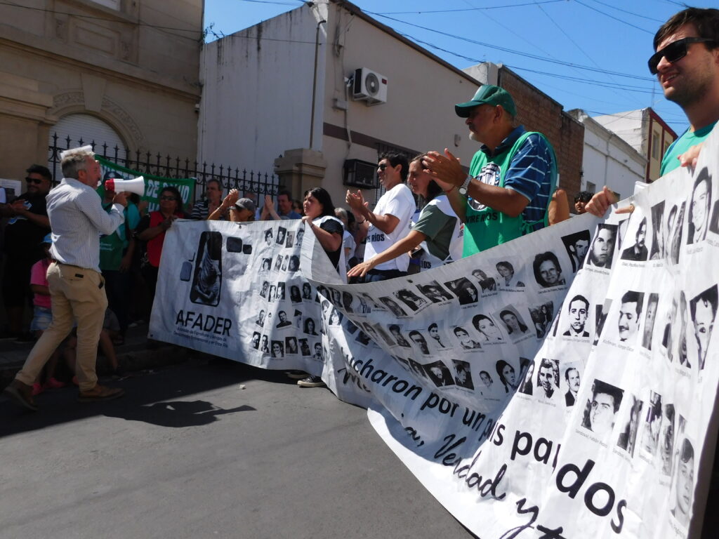 Allí se expresaron todas las organizaciones contra los recortes del gobierno provincial a las políticas de Memoria, Verdad y Justicia. En este sentido, el Secretario General de ATE Entre Ríos, expresó: “A días de cumplirse los 50 años del golpe genocida, los sectores convocados, seguimos peleando por la Memoria, la Verdad y la Justicia y por la defensa del Registro Único de la Verdad”.