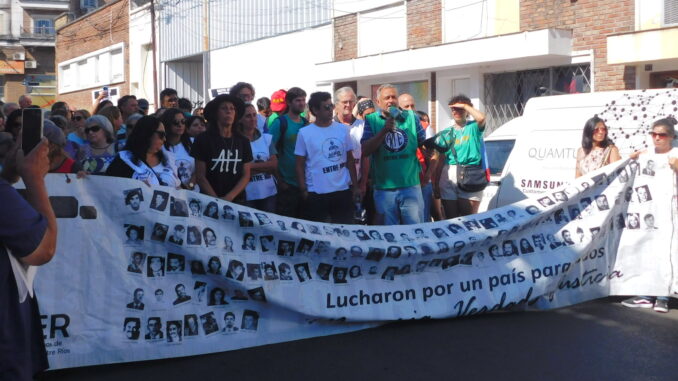Allí se expresaron todas las organizaciones contra los recortes del gobierno provincial a las políticas de Memoria, Verdad y Justicia. En este sentido, el Secretario General de ATE Entre Ríos, expresó: “A días de cumplirse los 50 años del golpe genocida, los sectores convocados, seguimos peleando por la Memoria, la Verdad y la Justicia y por la defensa del Registro Único de la Verdad”.