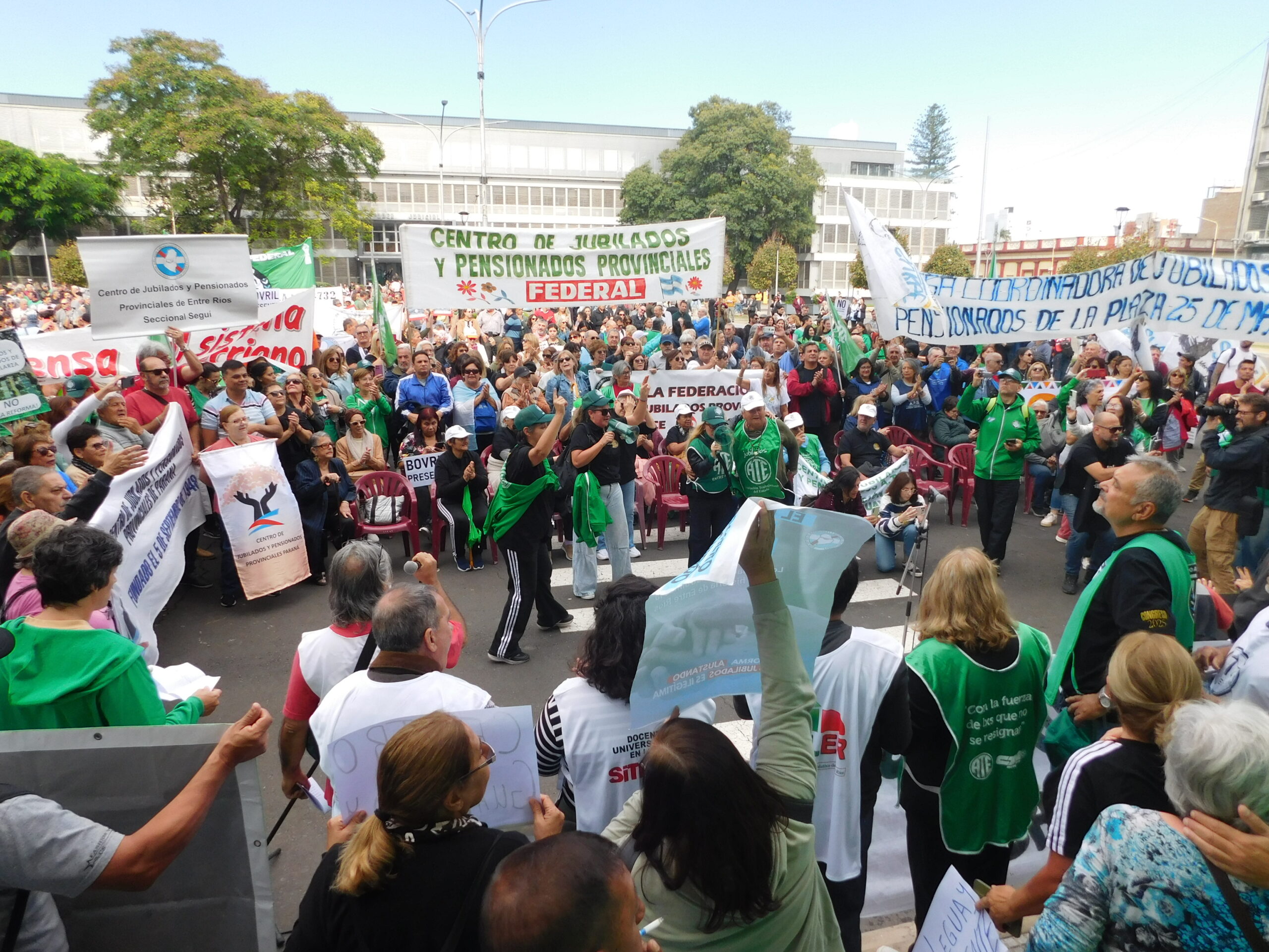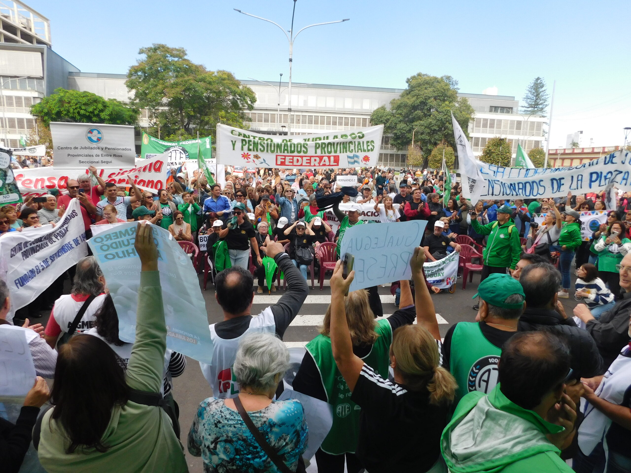Este jueves se realizó una multitudinaria Marcha Provincial en Defensa del Sistema Previsional entrerriano. La misma fue gestada por los sindicatos y organizaciones que componen la Multisectorial, que, ante el avance de las políticas de ajuste a las que se suma el intento de reforma previsional, le dicen NO MÁS al gobierno de Juntos.