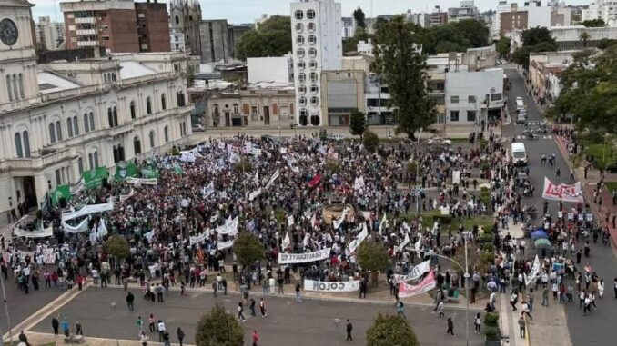 La gran marcha fue convocada a las 10 de la mañana en Plaza 1 de Mayo. Allí se congregaron los gremios, organizaciones y agrupaciones que partieron hacia Casa de Gobierno. La movilización fue masiva y colmó las calles de Paraná.
