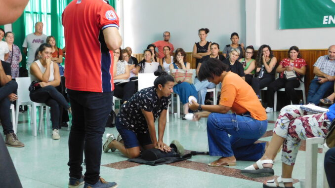 Con una masiva participación, con alrededor de un centenar de compañeros y compañeras, se llevó a cabo este lunes 23, la capacitación sobre Reanimación Cardiovascular (RCP) y el uso del Desfibrilador Externo Automático (DEA). Esta instancia se desarrolla en el marco del instructivo firmado con el Gobierno Provincial y refleja el firme compromiso de las y los trabajadores estatales con la formación continua.